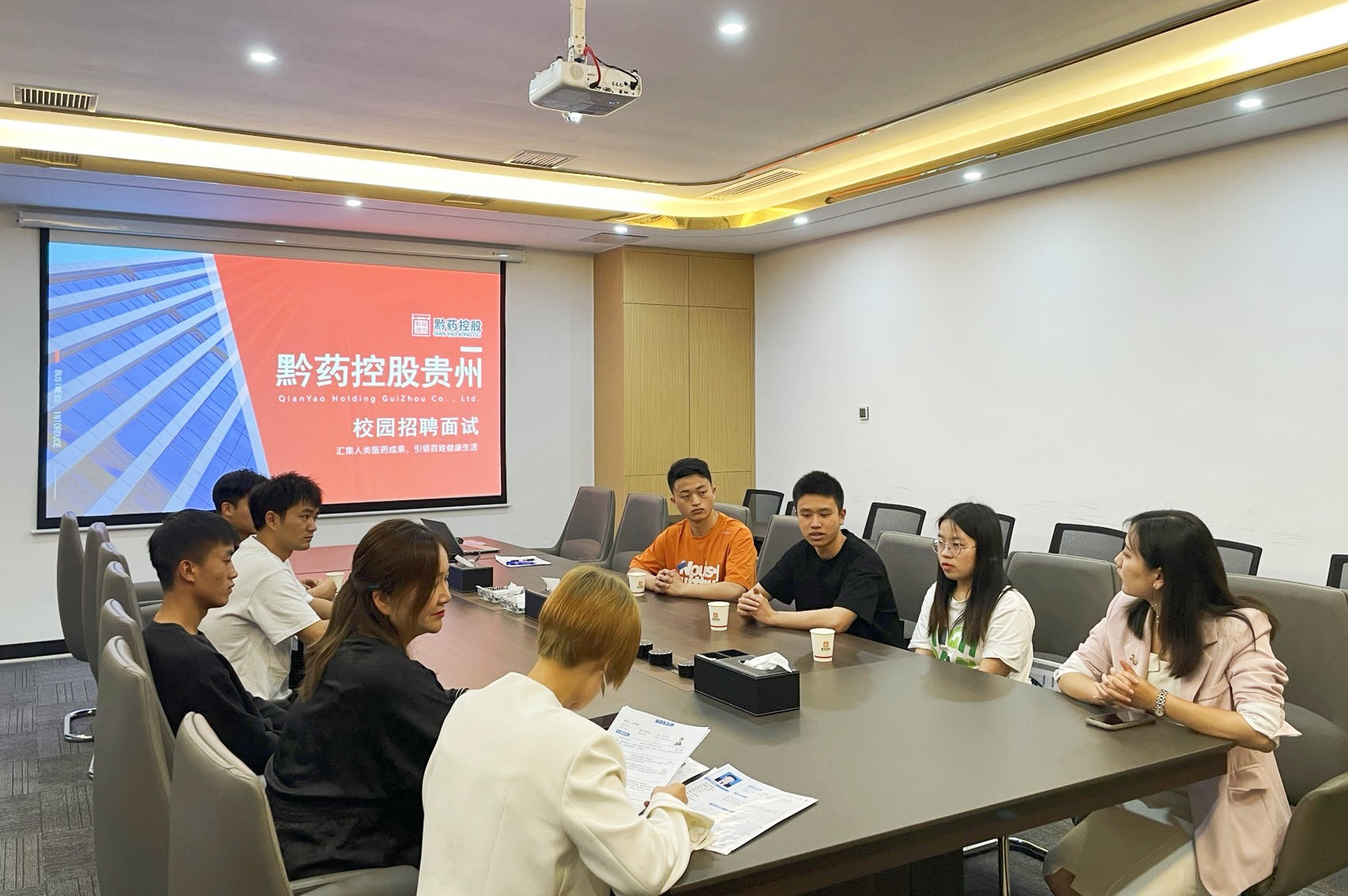 招聘會在破冰遊戲的歡快(kuài)氣氛中開始,随後,左瑩從(cóng)公司簡介、發展曆程、集團架構、企業文化、主營業務、物流中心、職業規劃等七個方面進行詳細介紹,讓同學們對黔藥貴州有清晰了解。